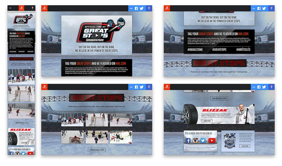 Our objectives were to create an emotional connection between hockey and Bridgestone in Canada for our fans. Our solution was two simple words: Great Stops. Every Canadian hockey fan understood this double meaning: the two words inherently linked Bridgestone winter tires to the ability to stop in winter conditions AND equally to goal-stopping in hockey, highlighting Bridgestone’s NHL Winter Classic® sponsorship.