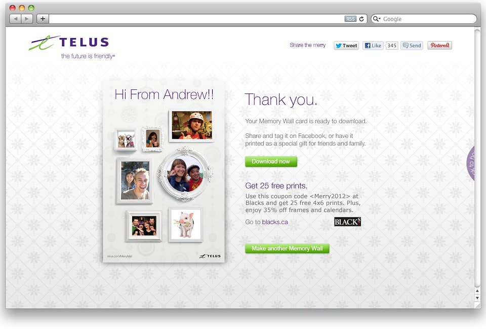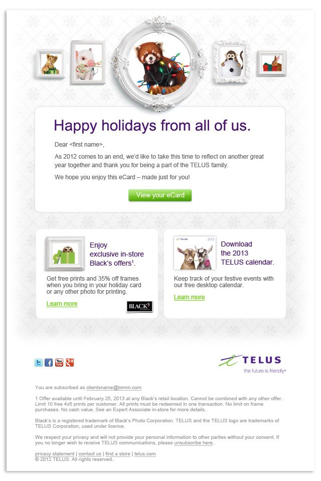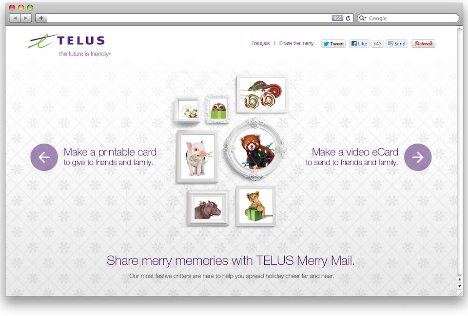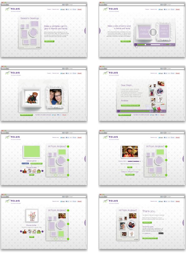 Make your own video or print e-card by uploading your own photos along with TELUS critters