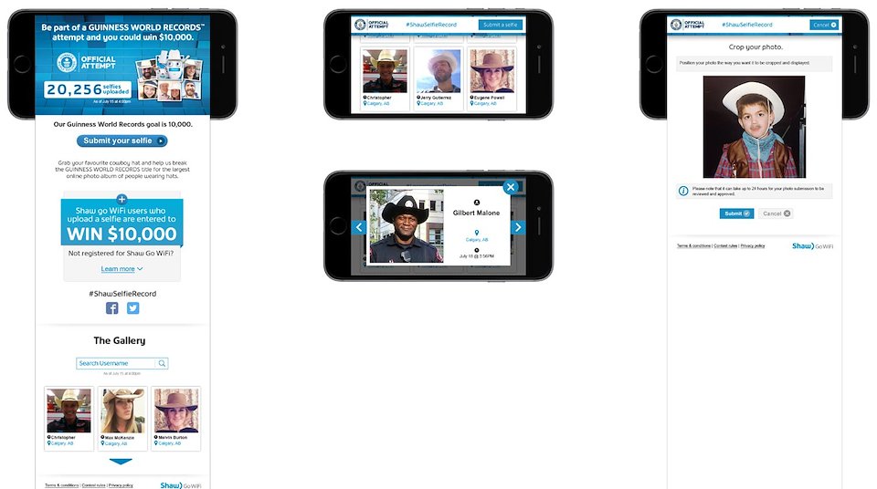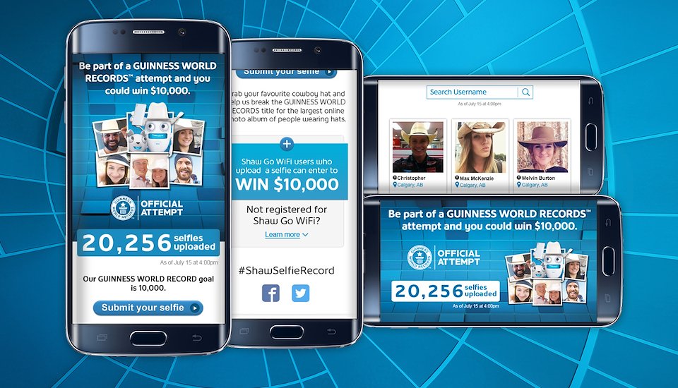 To get more people to embrace the Wifi network we launched a Guinness World Record attempt for the biggest online album of people wearing hats. The campaign coincided with the Calgary Stampede. Uploading large files made for a great reason for people to join the Shaw Go Wifi Network, and the chance to win $10,000 didn’t hurt.