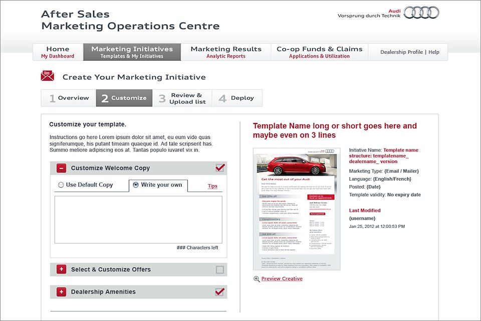 Audi Dealer portal for customized dealer level email deployment and print collateral resource